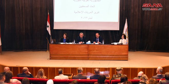 أطلق اتحاد الصحفيين تقرير الحريات الإعلامية في سورية لعام 2022، والذي يتضمن توثيق حقيقة الأحداث والانتهاكات المسجلة بحق المؤسسات الإعلامية والإعلاميين السوريين من قبل الاحتلال الإسرائيلي في الجولان المحتل والتنظيمات الإرهابية والميليشيات المرتبطة بالاحتلال الأمريكي، وذلك في مكتبة الأسد الوطنية بدمشق.