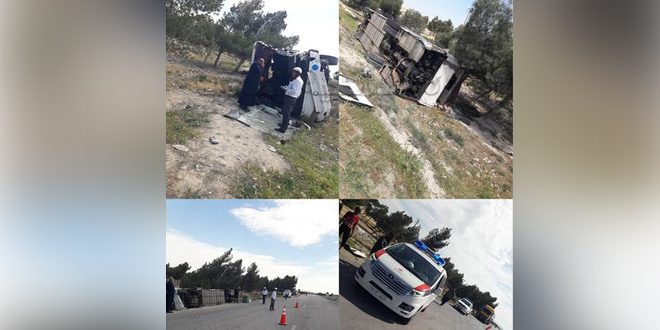 أصيب 11 مواطناً جراء حادث على طريق حمص تدمر بمنطقة الفرقلس بريف حمص الشرقي.