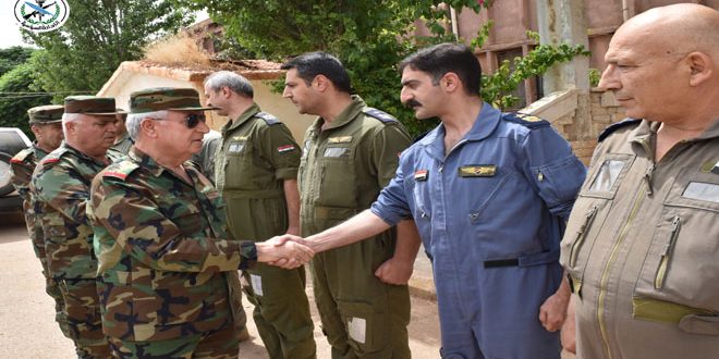 واختتم العماد أيوب جولته بلقاء الطيارين البواسل مثمنا كفاءتهم العالية واندفاعهم لتنفيذ الواجب المقدس لحماية أمن الوطن والمواطنين.