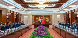 وتابع الرئيس الأسد: في نفس هذا الإطار، نحن نتطلع لدور الصين الحاضر والمستقبلي، سورية والكثير من دول العالم تتطلع لهذا الدور المحدد بشكل واضح عبر مبادرات ثلاث هي: مبادرة الحضارة العالمية، مبادرة الأمن العالمي الأمن للجميع، ومبادرة التنمية العالمية والتي تعني أن نتبادل الفائدة كشعوب بدلاً من أن نربح على حساب بعضنا البعض.