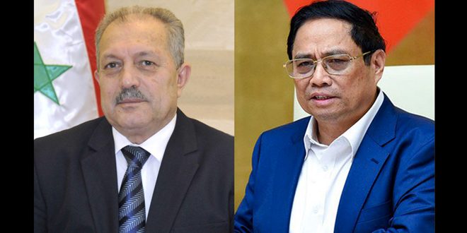 تلقى رئيس مجلس الوزراء المهندس حسين عرنوس رسالة تعزية من رئيس الوزراء الفيتنامي فام مينه تشينه بشهداء الاعتداء الإرهابي الغاشم الذي استهدف حفل تخريج طلاب ضباط الكلية الحربية في حمص.