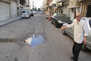 شوارع حي كرم اللوز محفرة و مظلمة … و انسدادات شبكة الصرف الصحي ترهق الأهالي… الحدائق معدومة و ضخ المياه ضعيف…