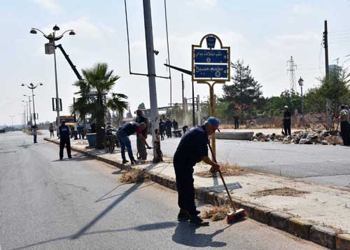 أقام مجلس المدينة يوم أمس حملة نظافة بحي الوعر في شارع القائد المؤسس حافظ الأسد وذلك استمراراً للحملة التي أطلقها المجلس تحت شعار «سوا مكملين لتصير مدينتنا أجمل »