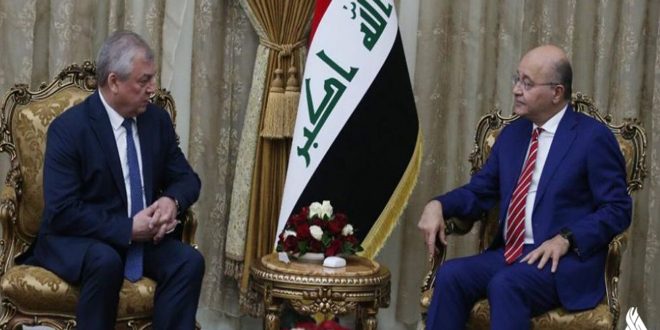 ونقل موقع الرئاسة العراقية عن صالح قوله خلال لقائه في بغداد اليوم المبعوث الخاص للرئيس الروسي إلى سورية ألكسندر لافرنتييف والوفد المرافق له إن هناك “أهمية لتعزيز أواصر الصداقة وتوسيع التعاون بين العراق وروسيا في المجالات السياسية والاقتصادية وبما يخدم مصالح الشعبين الصديقين” منوهاً بالدور الروسي في الحرب ضد الإرهاب ودعم العراق في هذا السياق.