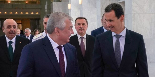 الرئيس الأسد يستقبل لافرنتييف والحديث يتطرق للجهود التي تبذلها موسكو ودمشق لتفعيل العملية السياسية بالتوازي مع مواصلة الحرب على الإرهاب