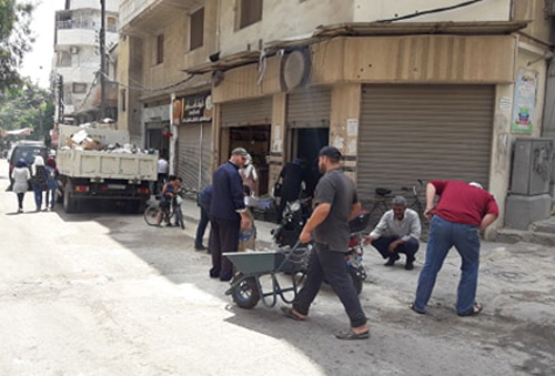 وذكر راشد التلاوي مختار الحي أنه بمبادرة من مديرية النظافة بدأ عمال المديرية بحملة طوعية لتنظيف شوارع الحي وشاركهم في هذه الحملة أهالي الحي حيث قاموا بالتنظيف أمام منازلهم ومساعدة العمال بترحيل بعض الأنقاض الموجودة في شوارع الحي ليعود حي باب السباع لسابق عهده كمركز تجاري مهم في المدينة .
