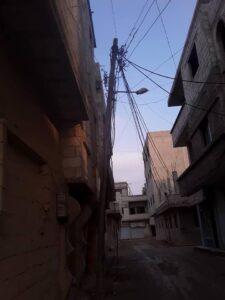 و أشار الأهالي القاطنون في شوارع 6-7- 8 أنهم حُرِموا من الكهرباء لمدة 20 يوما ، بالإضافة إلى انعدام إنارة الشوارع وغرقها في الظلام الدامس وخاصة عند حلول المساء حيث يخشى الأهالي من الخروج مع أطفالهم .