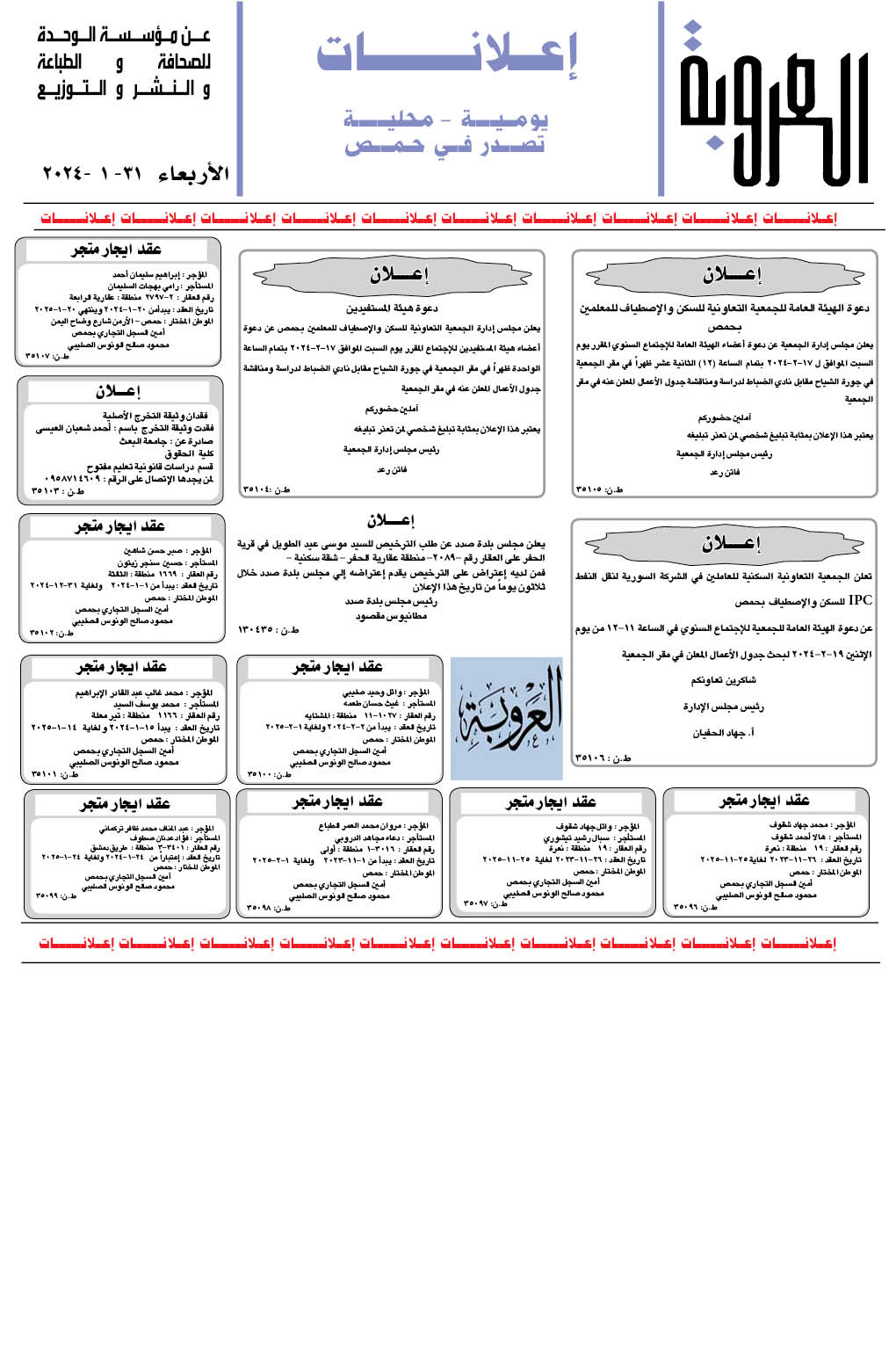 اعلانات العروبة إعلانات آخر تحديث 31 كانون الثاني , 2024 شارك FacebookWhatsAppFacebook MessengerTelegramTwitter