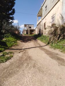 منذ دخولنا القرية لاحظنا أن الشوارع كلها ترابية باستثناء الطريق الرئيسي المؤدي إلى مدخل القرية والذي تم تعبيده ( حسب الأهالي ) منذ حوالي 40 عاماً وحالياً ملأته الحفر الكثيرة ويحتاج إلى مد قميص إسفلتي كونه يعيق حركة مرور السيارات خاصة في فصل الشتاء حيث تمتلئ تلك الحفر بمياه الأمطار و تعيق حركة المشاة نظراً لتراكم الطين و لاحظنا أنه قبل مدخل القرية يوجد تجمع سكاني ( رأس النبع ) وهم من الوافدين الذين لجؤوا إلى القرية خلال الحرب وعددهم 10 عائلات.. وإن الشارع المتفرع من الطريق الرئيسي للقرية والذي يصل إلى منازل تلك العائلات مازال ترابياً وهو بطول 200 متر ويمتلئ برامات المياه والطين شتاءاً بشكل يعيق حركة طلاب المدارس في الوصول إلى مدرستهم وهذا ما أكده أحد القاطنين في هذا التجمع ( رأس النبع ) والذي شرح لنا معاناتهم اليومية جراء ذلك .