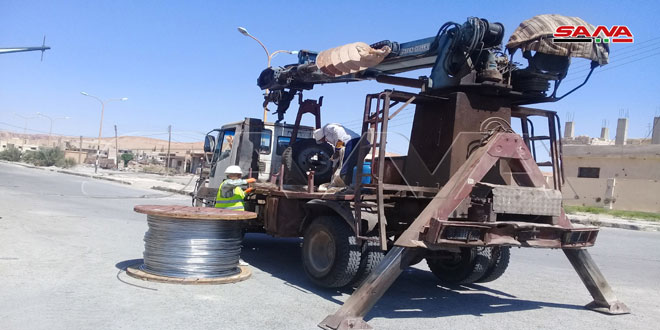 باشرت الشركة العامة للكهرباء بحمص أعمال إعادة تأهيل الشبكة الكهربائية الهوائية في مدينة تدمر وإصلاح ما خربه إرهابيو تنظيم “داعش” قبل اندحارهم من المدينة بفضل بطولات وتضحيات الجيش العربي السوري.رئيس قسم كهرباء تدمر حمزة العبد الله أكد في تصريح لمراسل سانا “أن مشروع إعادة تأهيل خطوط التيار الكهربائي المنخفض يهدف إلى إعادة تغذية منازل المواطنين بالطاقة الكهربائية في إطار الجهود التي تبذلها الحكومة لإعادة الخدمات الأساسية للمدينة وفي ظل ازدياد أعداد العائدين إلى منازلهم بعد تطهير المدينة وباديتها من الإرهاب”.